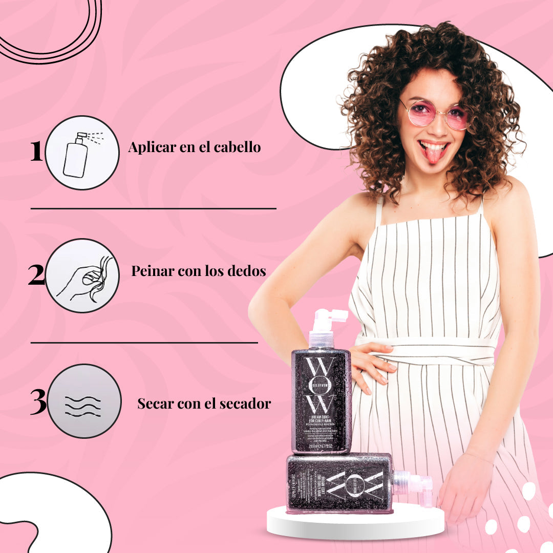 El frizz destruye la forma natural del rizo y arruina cualquier intento de peinado. Dream Coat hidrata profundamente y deja tus rizos definidos, brillantes y con movimiento.