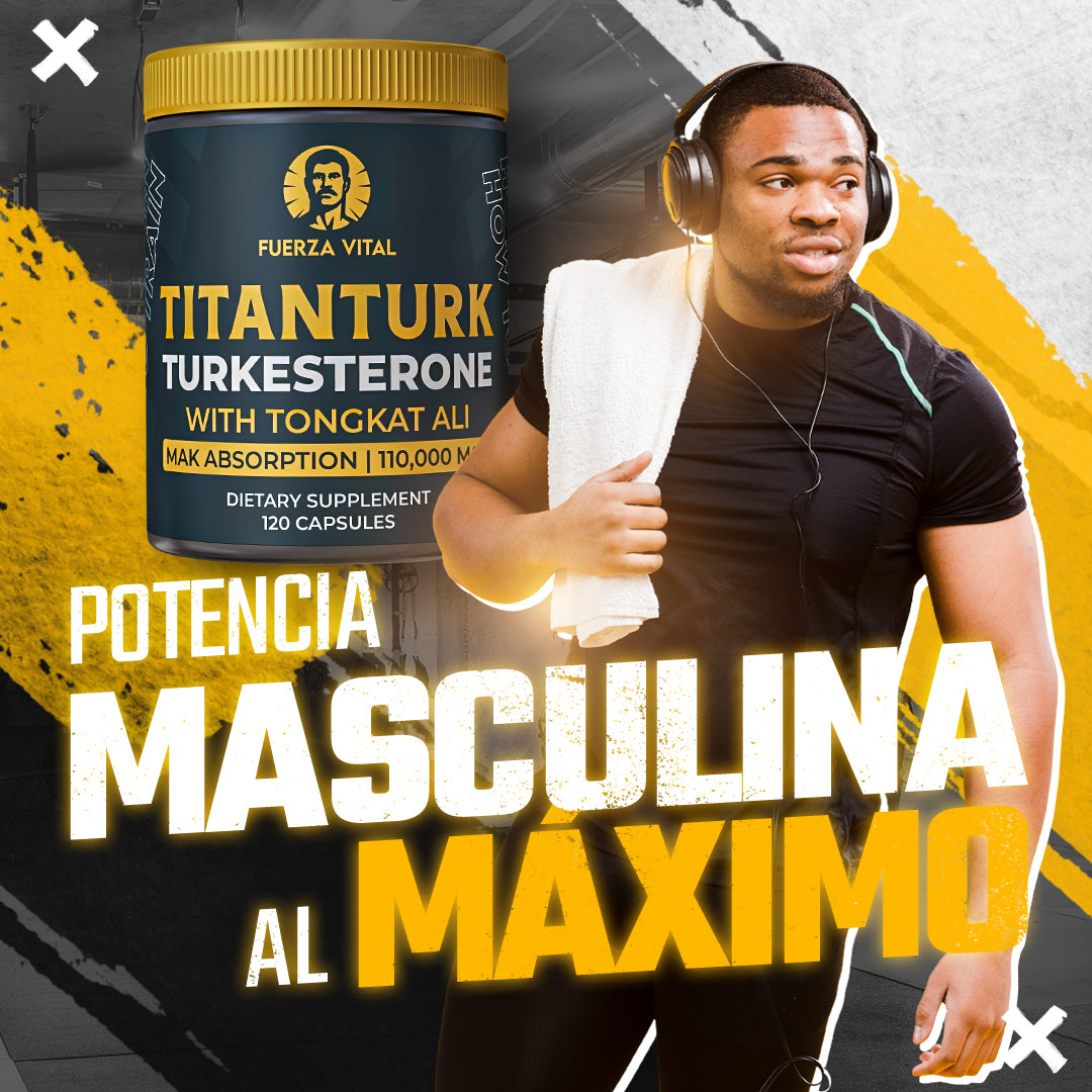Con TITANTURK™ de Fuerza Vital, activa tu deseo masculino, aumenta tu vitalidad y lleva tu rendimiento al máximo. Una sola fórmula que te hace sentir más fuerte en el gimnasio y más potente en la intimidad.