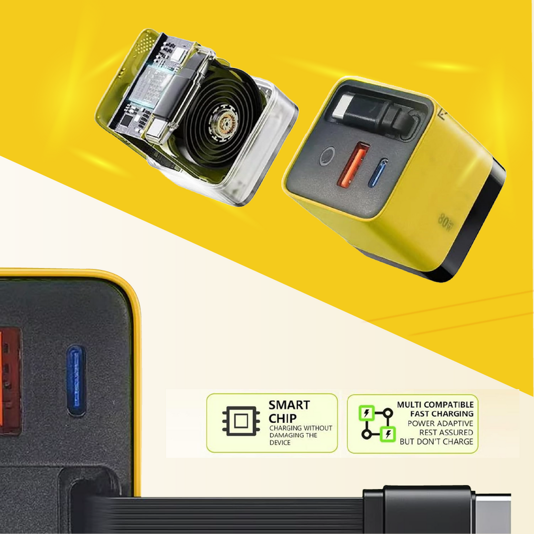 3 en 1 con cable retráctil, enchufe plegable, carga inteligente universal y diseño portátil que cabe en tu bolsillo.